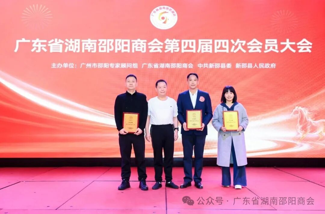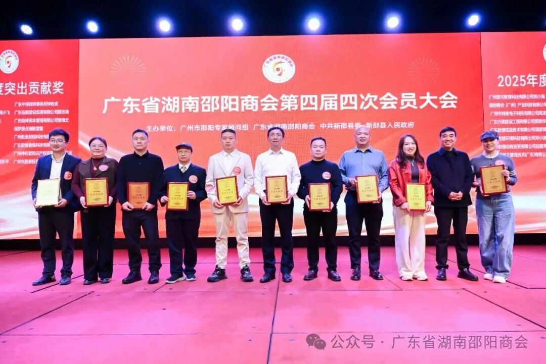 随后,评优颁牌环节有序开展,分别为优秀县区代表、优秀联络处、优秀会员及突出贡献企业颁奖。新邵县邓小波、隆回县贺小海、邵阳县钟牧虎荣获优秀县区代表;保罗原点湘聚、南国尚品酒家获评优秀联络处。广州市东滕实业、广东好普集团、侨银股份等49家企业及个人荣获突出贡献企业称号,各获奖代表依次上台领奖,现场掌声不断,见证邵商的责任与担当。