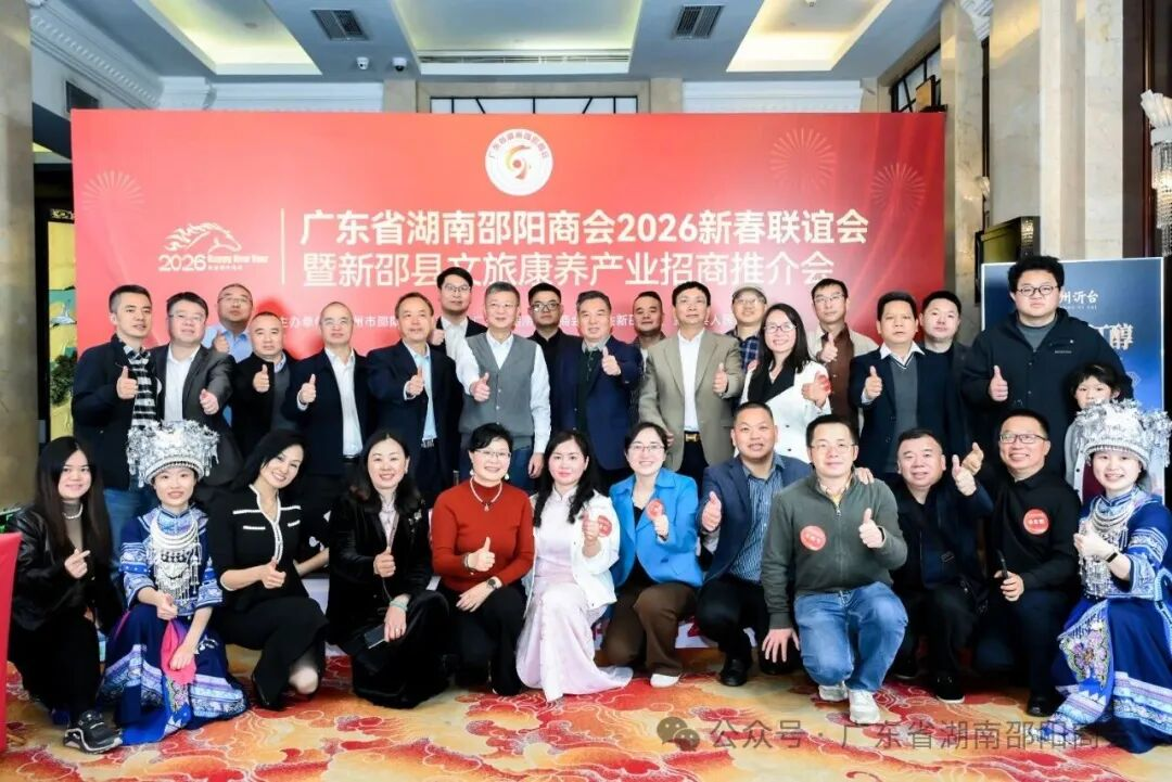 珠水含情,邵贤聚粤。1月28日,广东省湖南邵阳商会“情系邵阳·聚力湾区”2026新春联谊会暨新邵县文旅康养产业招商推介会在阳光酒店一楼宴会厅隆重举行。来自邵阳市、湖南省驻粤办及各地的领导嘉宾、商会会员、专家顾问、乡贤同仁近700人齐聚一堂,共叙桑梓情谊,共话发展机遇,共贺甲辰蛇年尾声,同迎丙午马年新程。